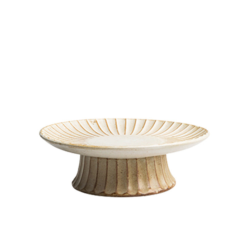 Den höga foten och de vackra räfflade detaljerna skapar en känsla av lyx och hantverk – perfekt för servering av tårta, frukt eller som dekoration.