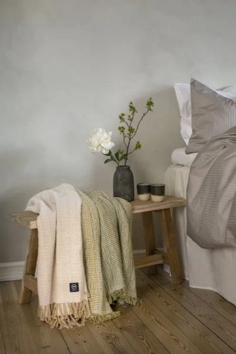 En mjuk och fin pläd eller filt med våfflad struktur, perfekt för svala sommarkvällar på uteplatsen eller mysiga stunder hemma i soffan. Välj mellan flera ljusa färger som citrongul, karamellrosa, grå eller grön. Pläd Vilhelmina är ett säkert kort i alla typer av inredningar. Alla våra plädar från Recycled by Wille är dessutom hållbara i dubbel bemärkelse. Vi designar och tillverkar varje pläd i 99 procent återvunnet tyg som blivit över från andra produktioner, vilket gör att du med gott samvete kan unna dig att göra fint hemma.